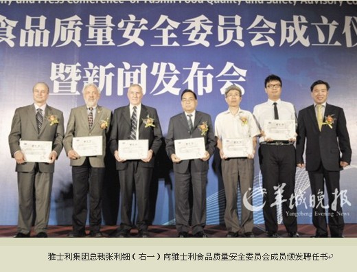 本月7日下午,雅士利集團(tuán)(下稱雅士利)在廣州香格里拉大酒店,隆重召開新聞發(fā)布會,正式宣布“雅士利食品質(zhì)量安全委員會”(The Food Quality and Safety Advisory Committee)成立?! ≈袊橹破饭I(yè)協(xié)會理事長宋昆岡,廣東省質(zhì)量技術(shù)監(jiān)督局黨組成員、副局長高國盛,潮州市委常委、常務(wù)副市長方利旭,廣東省食品生產(chǎn)監(jiān)管處處長張欣,潮州市食品安全委員會主任、食品藥品監(jiān)督管理局局長丁少輝,潮州市質(zhì)量技術(shù)監(jiān)督管理局局長龐大春,潮安縣食品藥品監(jiān)督管理局局長劉旭輝,雅士利集團(tuán)董事長張利坤、總裁張利鈿,凱雷投資集團(tuán)董事張馳和復(fù)星集團(tuán)副總裁金重仁等各界人士參加了成立儀式。 據(jù)悉,雅士利食品質(zhì)量安全委員會由6名分別代表不同學(xué)術(shù)科目、研究領(lǐng)域及地理背景的成員組成。委員會成員包括主席Robert Ennis Brackett(博士 美國)及成員Kenneth Alan Buckle(博士 澳大利亞)、Andrew Ian McKenzie(新西蘭)、何兆桓(博士 中國香港)、蔣卓勤(教授 中國)、劉烈剛(教授 中國)[排名不分前后]?! ⊙攀坷称焚|(zhì)量安全委員會的成立,是雅士利集團(tuán)針對產(chǎn)品質(zhì)量和安全所建立的獨立、科學(xué)、系統(tǒng),并具有國際權(quán)威的監(jiān)督機(jī)構(gòu)。